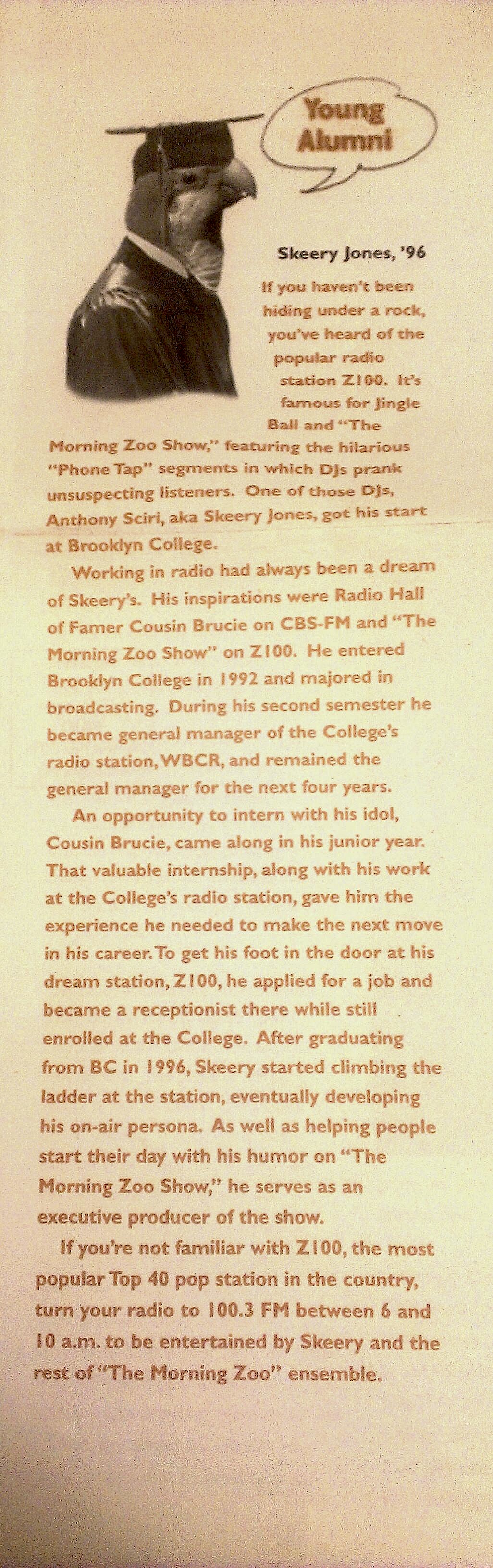 I worked for Brooklyn College, where I got to interview the guy who invented brownulated sugar and radio personality Skeery Jones of Z100.